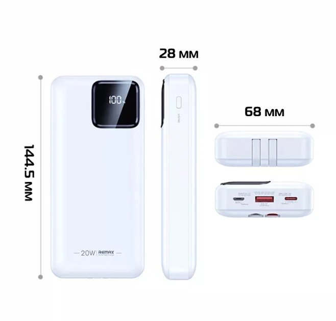 Зарядное устройство прекрасно подойдет для смартфонов, браслетов, фотоаппаратов, смарт – часов, планшетов и других повседневных устройств. При этом Вы сможете заряжать одновременно целых 3 гаджета. С помощью быстрой зарядки батареи, восстанавливается стремительно, сохраняет заряд – долго, благодаря литий-полимерного виду аккумулятора. Заряжается от USB и содержит объём 20000mAh, что дарит пользователю уйму возможностей. LED дисплей поможет, без проблем, отслеживать проценты оставшегося заряда.