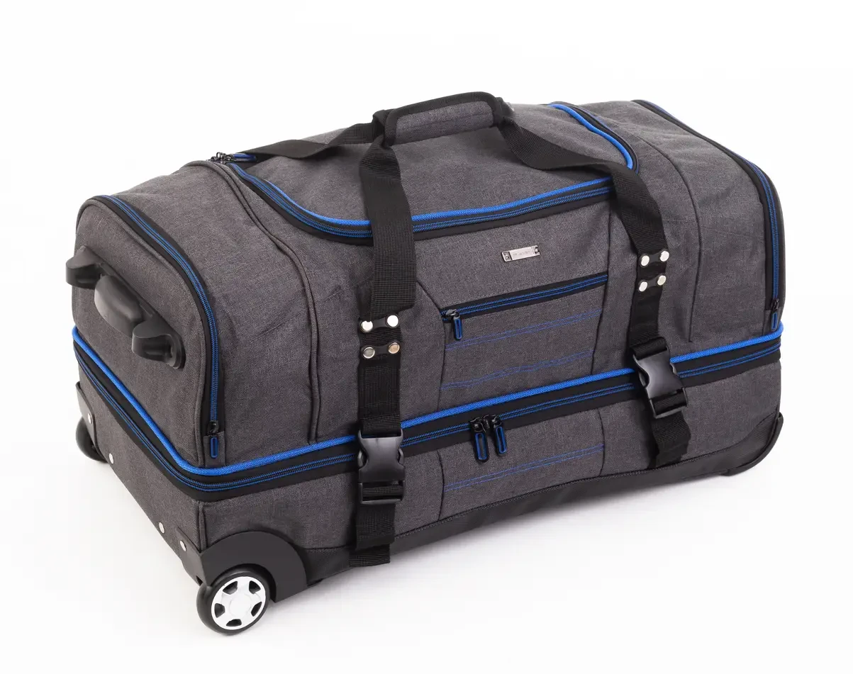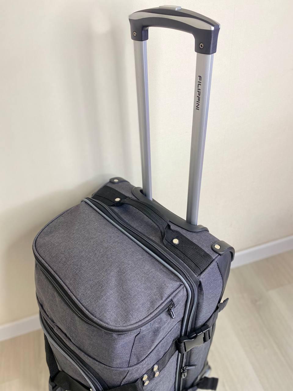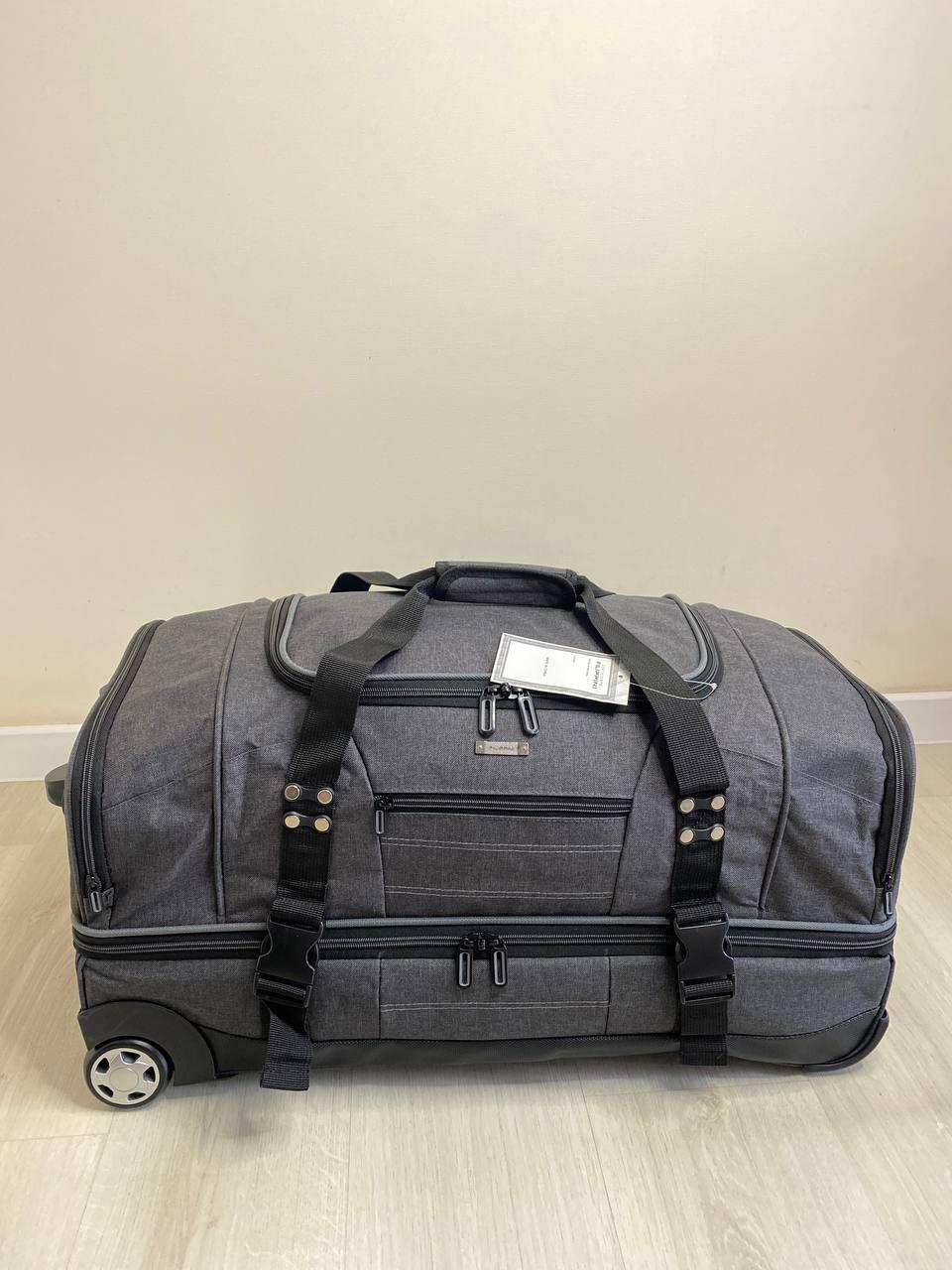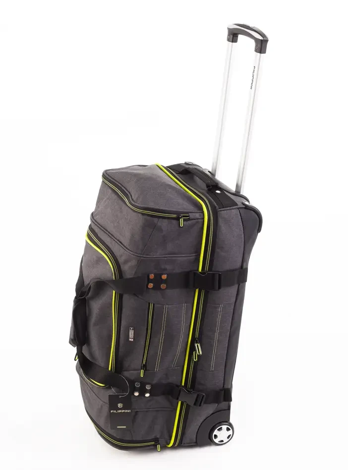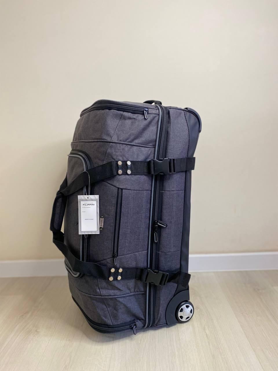 Двухуровневая Дорожная сумка FILIPPINI люкс качества, на колесах подойдет для дальних поездок. Сумка сделана Полиэстера 830D Имеет крепкую структуру, это дает возможность уберечь Ваш груз от повреждений. Так же дорожная сумка, имеет водоотталкивающие свойства. Прочная и надежная сумка для путешествий. Сумка не обычная имеет два уровня. Где можно расположить все ваши вещи. Одно большое отделение, которое можно стянуть при желании ремнями, для безопасности (например в метро) так же карман на молнии, и два вместительных боковых кармана. Абсолютно все отделения на молнии. Продольные ножки по всему дну сумки а так же боковые обеспечат ставить сумку на любую поверхность. Большие колеса, прорезиненные обеспечат комфорт при движении._x000D_
