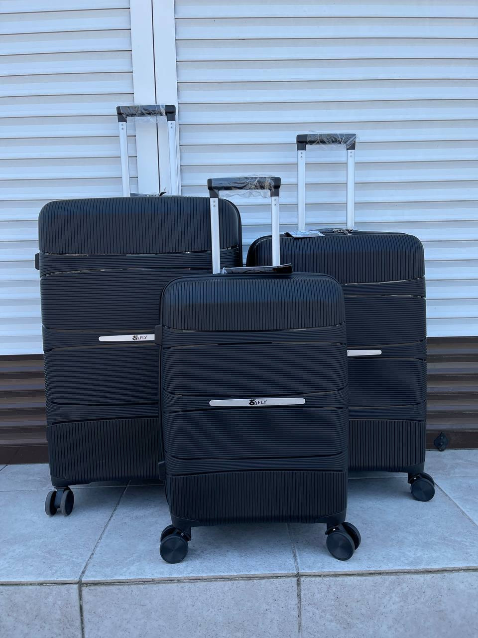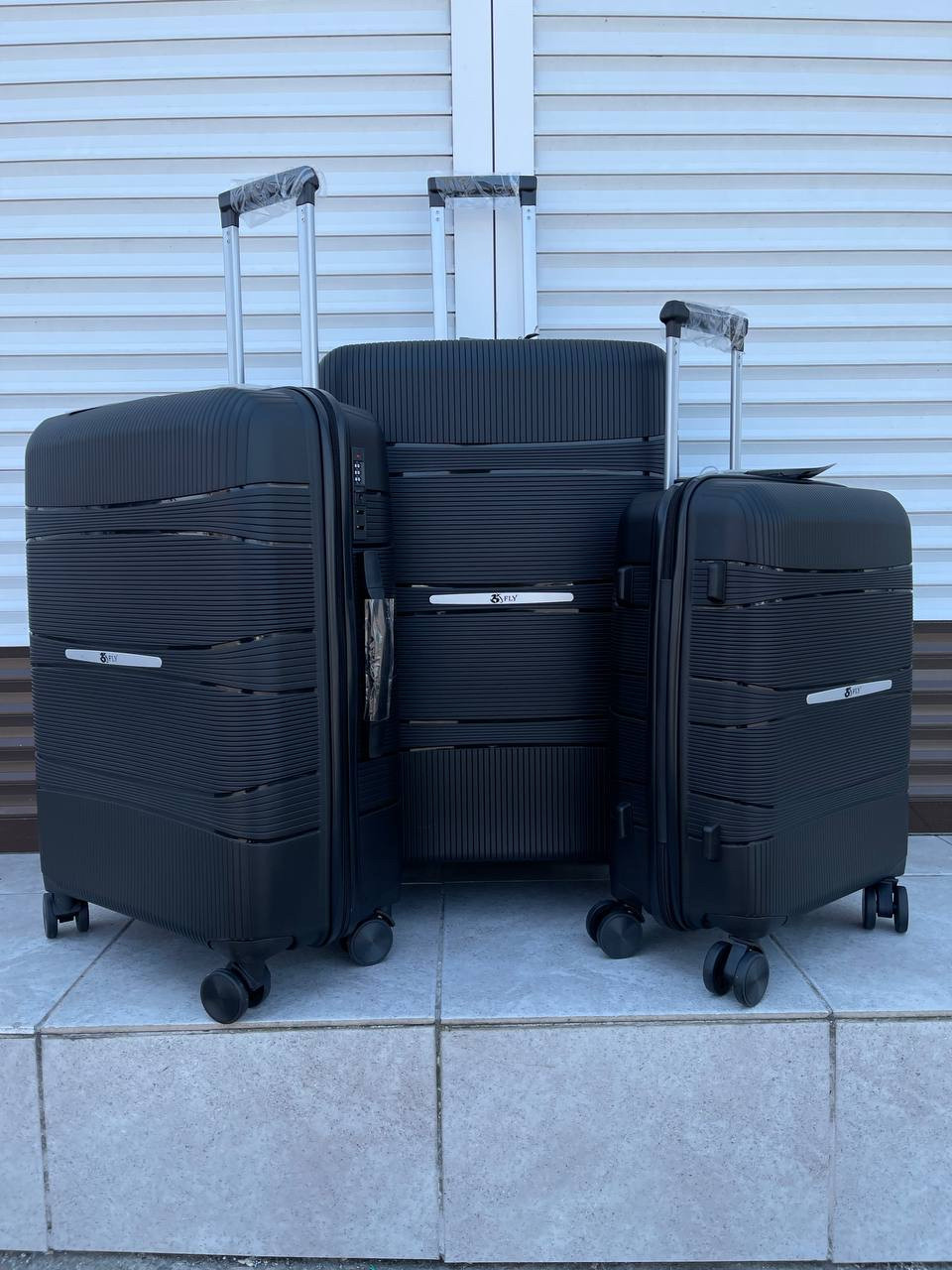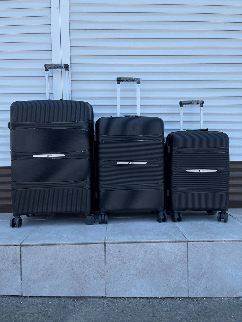 Набор полипропиленовых чемоданов FLY 3/1.(Черный) (OR)